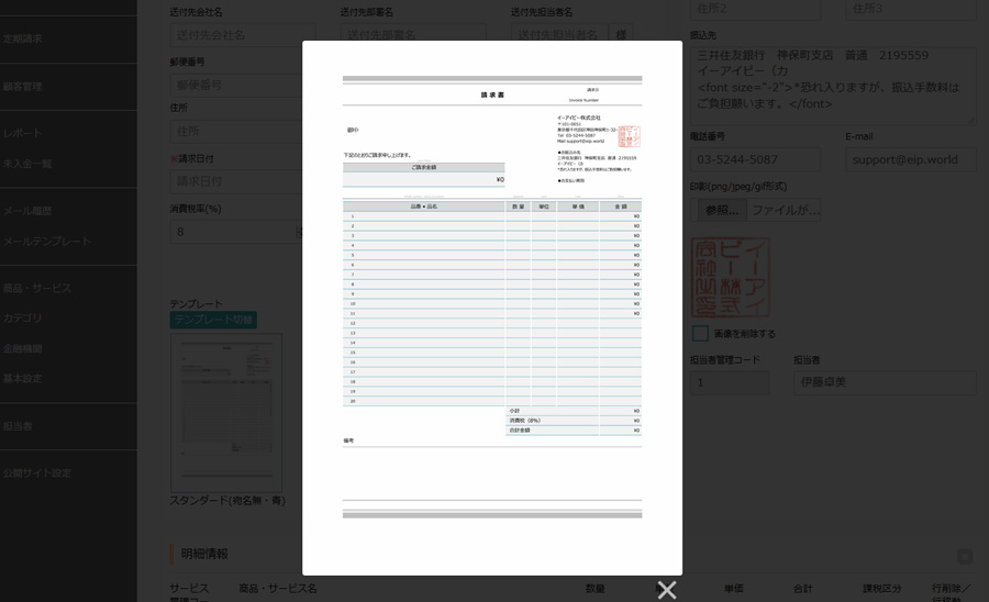 | 請求書テンプレート選択 | 20種類 |